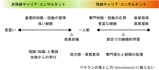 図:非熟練キャリア・コンサルタントから熟練キャリア・コンサルタントへの発達プロセス