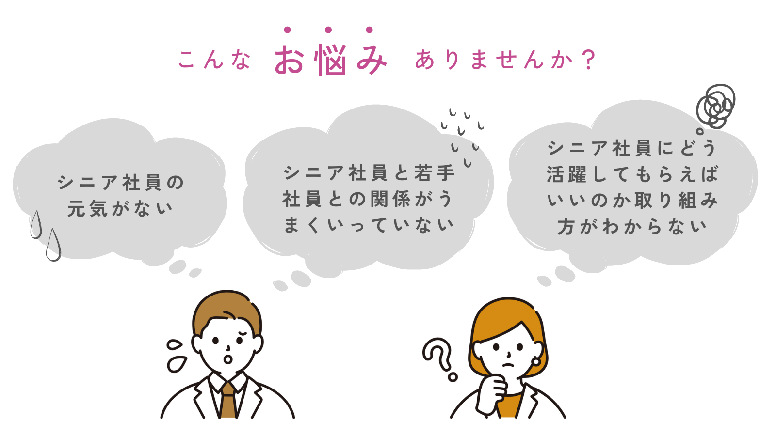 役職定年や定年再雇用などで立場や役割が変わったシニアの方々は、モチベーションの低下やかつて地位が高かった時の意識が抜けきれず、新しい職場環境に適用できないケースが多く見られました。